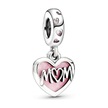 Nur Silver Mom Yazılı Pembe Mineli Kalp Gümüş Charm Nur-bl00193