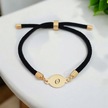 O Harfine Özel İpek Örgülü 14 Ayar Altın Plakalı Oval Motifli Hediye Bileklik-320harf-siyah Altın
