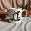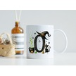 O Harfli Halloween Kedili Figür Kupa Bardak - Şapkalı Ve Kazanlı İsme Özel Kupa - Hediye 07 Beyaz