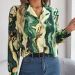 Ofis Kadın Rahat Moda Kontrast Renk Baskı Bluz Kadın Uzun Kollu Sonbahar Kış Zarif Çentikli Gömlek Elbise Tops 28621 Yeşil