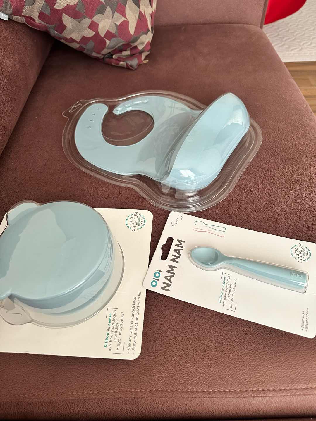 Oioi Basic Silikon Mama Önlüğü Mavi