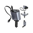 Oldfriend Gri 4'ü 1 Arada Araç Şarj Cihazı 80cm Usb Type-c Hızlı Şarj 180 Dönebilir