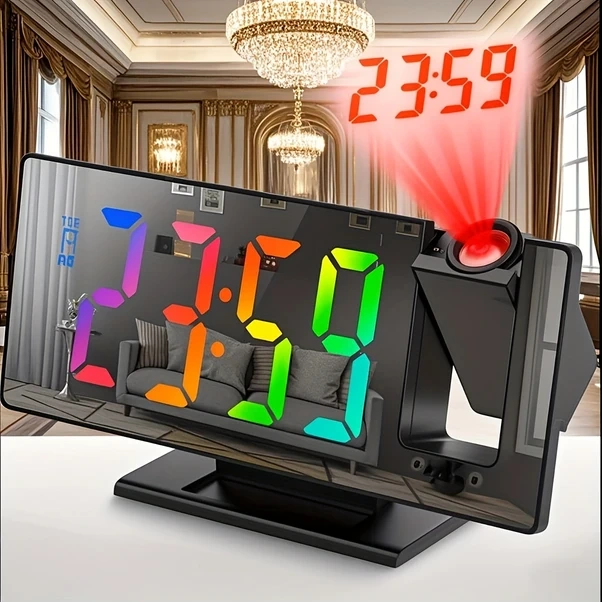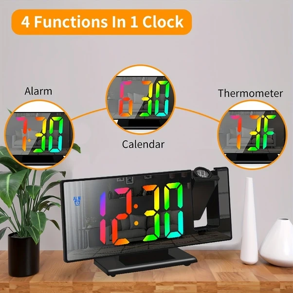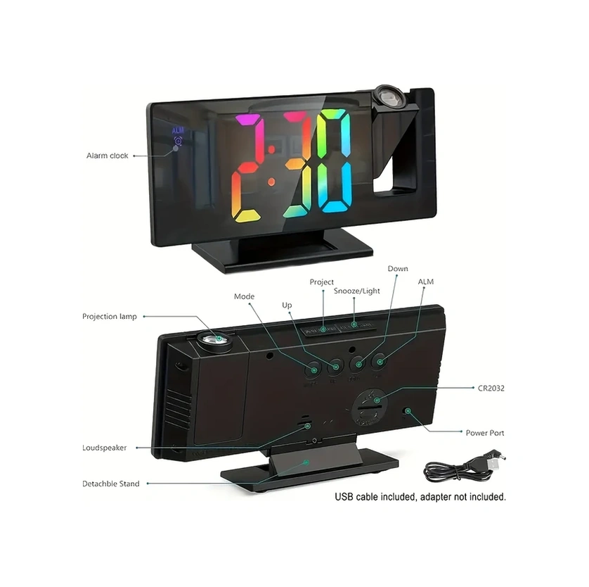 Oldfriend Siyah Yeşil Usb Projektörlü Dijital Alarm Saati Aydınlatma Sıcaklık Siyah + Yeşil