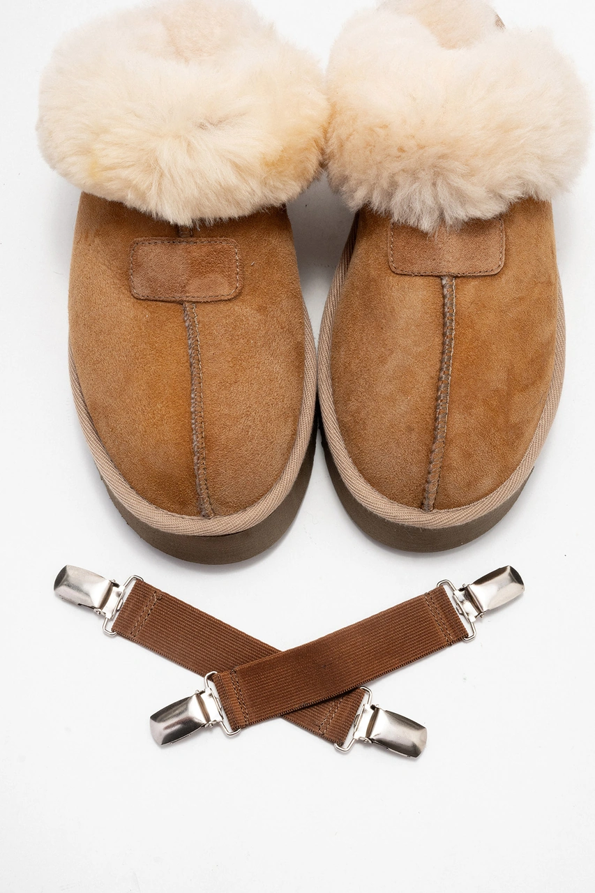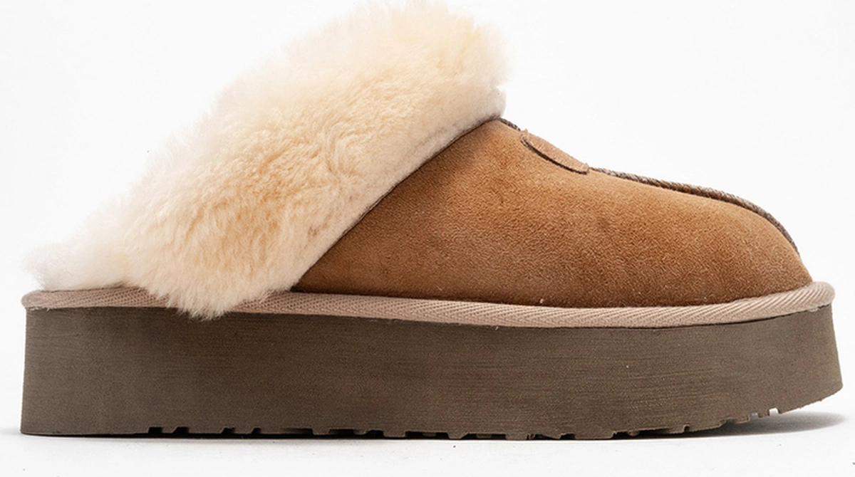 Olessa Taba Hakiki Deri Süet Kadın Kürklü Terlik Taba Süet Taba