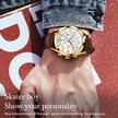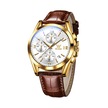 Olevs 2872 Erkekler Üç Göz Altı İğne Kronograf Su Geçirmez Kuvars Saat Beyaz + Altın