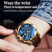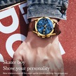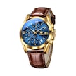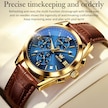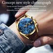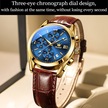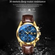 Olevs 2872 Erkekler Üç Göz Altı İğne Kronograf Su Geçirmez Kuvars Saat Mavi + Altın