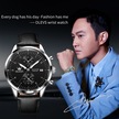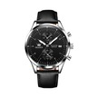 Olevs 2880 Erkekler Çok Fonksiyonlu İş Su Geçirmez Deri Kayış Kuvars Saat Siyah + Gümüş
