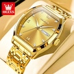 Olevs Top Marka Erkek Kuvars Saat Lüks Elmas Şık Paslanmaz Çelik Tonneau Kadran Su Geçirmez Işıldayan Erkek Kol Saati Altın