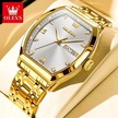 Olevs Top Marka Erkek Kuvars Saat Lüks Elmas Şık Paslanmaz Çelik Tonneau Kadran Su Geçirmez Işıldayan Erkek Kol Saati Altın - Beyaz