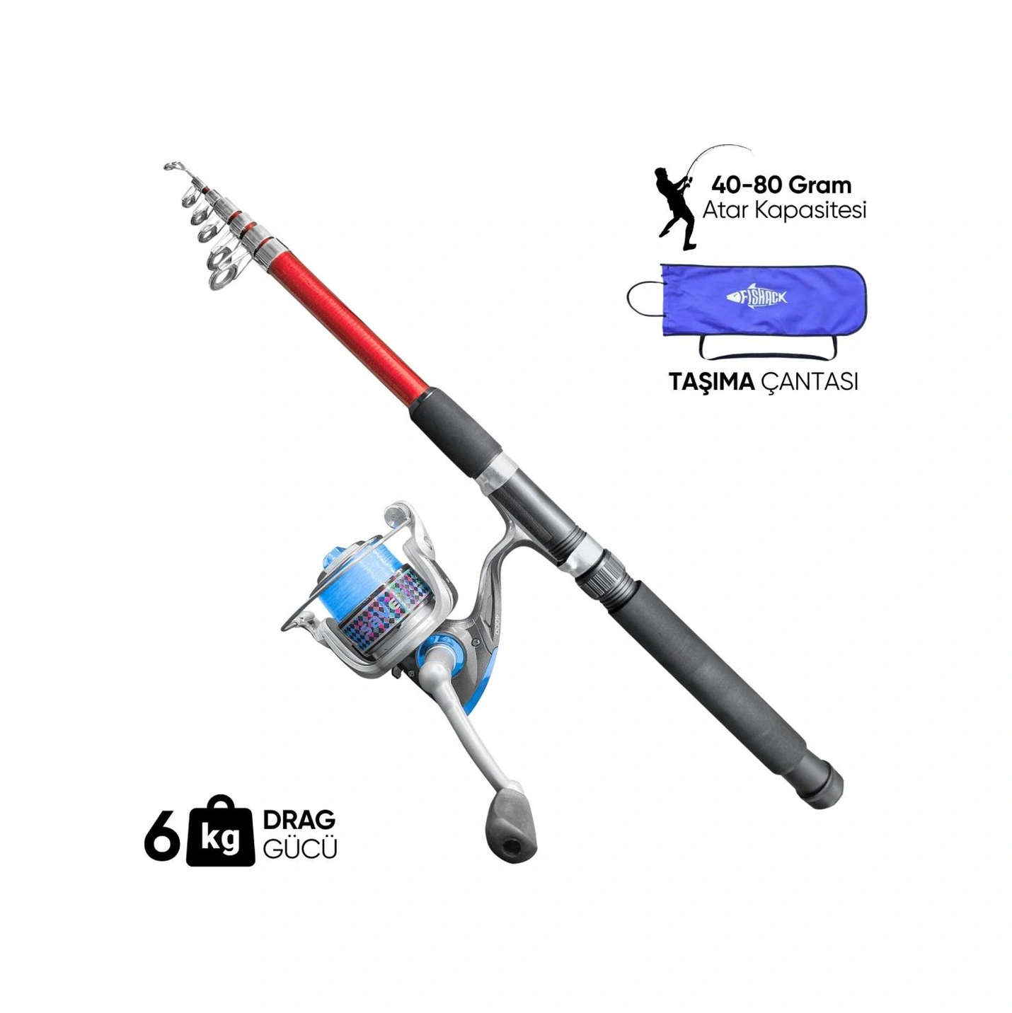 Olta Seti - 300cm Olta Kamışı 40-80gr / 4000'lik Olta Makinesi Xa-kırmızı - Taşıma Çantalı