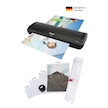 ürün çabuk ısınıyor ve kolayca pvc yapıyor. ürünün icinden hediyesi dışında 3 adet a3 ve 3 adet a4 boyutunda pvc kagidi da çıktı ilk denemelerimi onlarla yaptim. a3 boyutu büyük olur mu diye tereddüt etmeyin gayet kibar bir ürün iyiki a3 boyutunu almışım.yaninda hediye olarak gelen ürünler de işimi gayet iyi yarıyor. pvc kağıtları ikili bir sekilde hazir geliyor kisa kenarinin biri yapisik oldugu icin kağıdınizi icine rahatca yerlestirip hareket edip oynama derdi olmadan kapliyorsunuz. okul islerim icin cok ideal bir ürün oldu.
