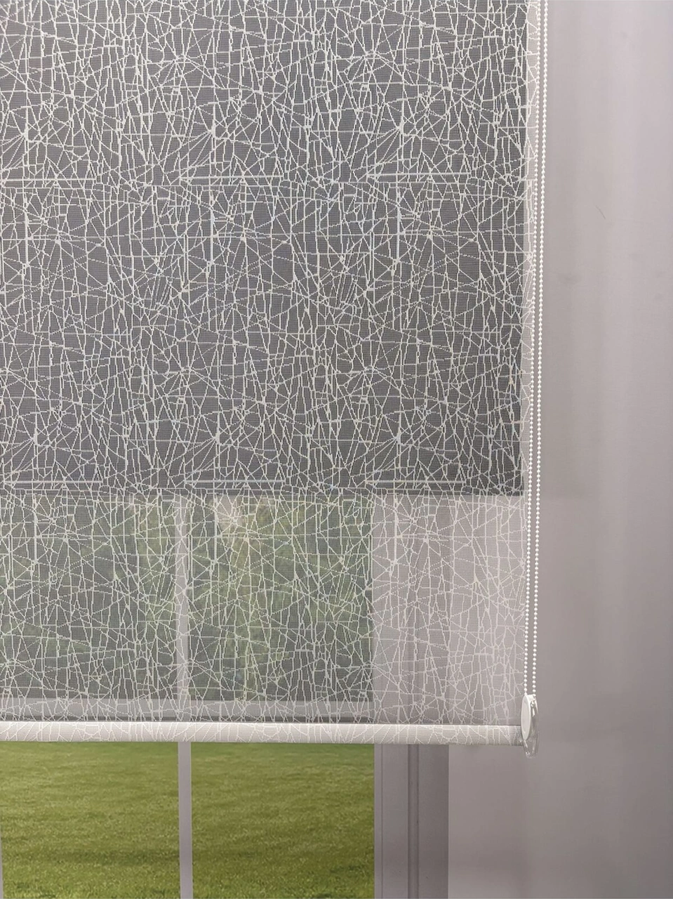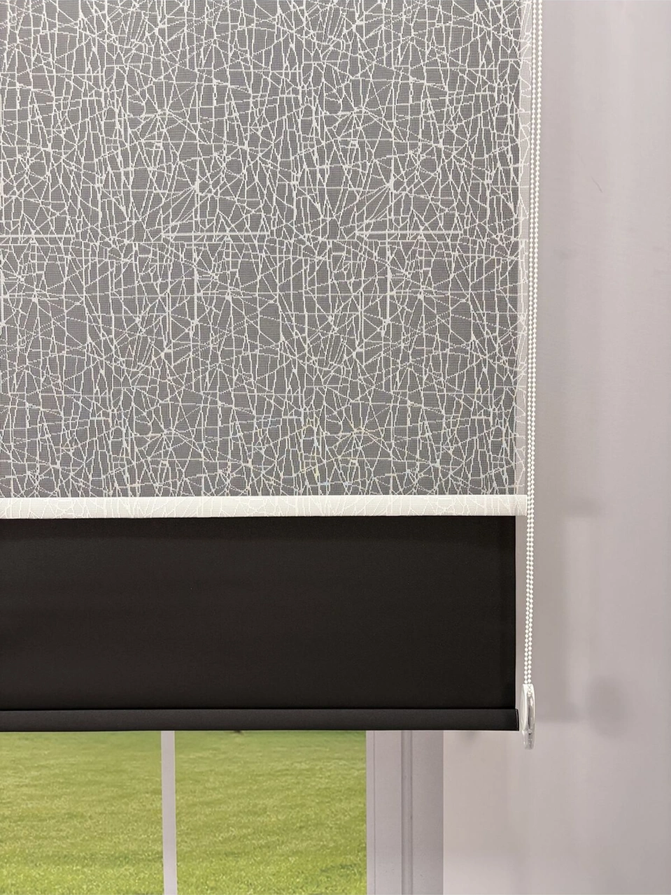 Olympos Serisi Kırçıl Desenli Çift Mekanizmalı Beyaz Tül Siyah Stor Perde Siyah
