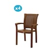 4'lü Set Bambu Pro Çift Ayak Rattan Desenli Kollu Sandalye Koltuk