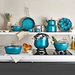 OMS 3519 Cam Kapaklı 16 Parça Granit Çeyiz Tencere Seti Mentol Ye