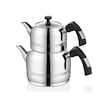 Oms Collection - 8090 - L - 4 Parça, İndüksiyonlu Ocak Uyumlu, Çaydanlık Gümüş - Siyah Renk Gümüş