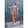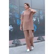 Omuz Detaylı Kol Nakışlı İkili Alt Üst Triko Takım Vizon Vizon