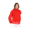 Omuz Fırfırlı Yaka Gipeli Şifon Bluz 6001-kırmızı