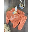 Monkey Nakışlı Kapişonlu Erkek Bebek Takım Turuncu