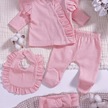 Omuzdan Fırfır Detaylı 5 Parça %100 Pamuk Kız Hastane Çıkışı Pembe