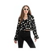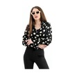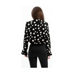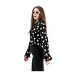 Omuzları Vatkalı Kolları Volanlı Puantiyeli Saten Gömlek - Siyah-ekru-siyah-ekru Siyah - Ekru