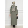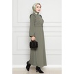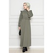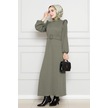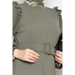 Omuzu Fırfır Kemerli Elbise-haki-4563 Haki
