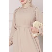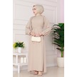 Omuzu Taş Detaylı Rose Elbise-bej-4778 Bej