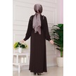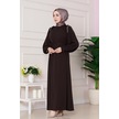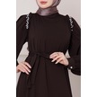 Omuzu Taş Detaylı Rose Elbise-kahverengi-4774 Kahverengi
