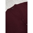 Ön Cepli V Yaka Battal Büyük Boy Düğmeli Yünlü Triko Hırka Bordo