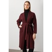 On Kadın Büyük Beden Beli Kuşaklı Şal Yaka Hırka 60900 Bordo Bordo