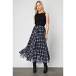 On Kadın Ekoseli Pileli Maxi Boy Etek 60214 Siyah Siyah