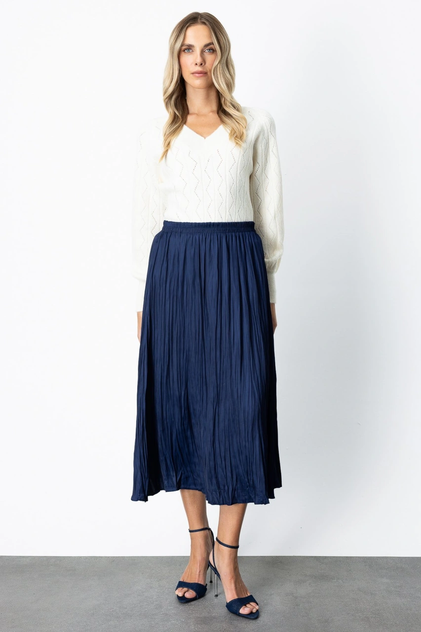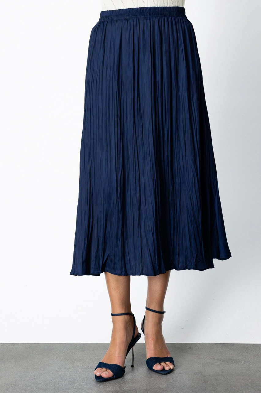 On Kadın Kırışık Görünümlü Midi Etek 64209 Lacivert Lacivert