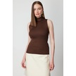 On Kadın Taşlı Kolsuz Triko Bluz 66375 Kahverengi Kahverengi