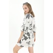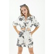 Önden Bağlamalı Dantelli Keten Takım - Siyah-siyah Siyah