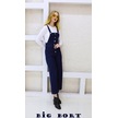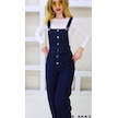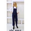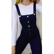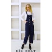 Önden Düğmeli Enzim Kot Kumaş Salopet & Tulum Mavi