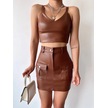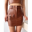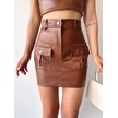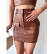 Önden İki Cepli Deri Etek Kahve H240040 Kahve