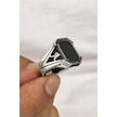 Oniks Taşlı Çift Tarafı Harfli V Model Gümüş Erkek Yüzük -8284 Gümüş