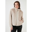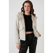 Kapüşonlu Düğmeli Peluş Mont - Kadın Beyaz