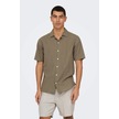 Only & Sons Erkek Onscaıden Kısa Kollu Keten Gömlek 22025116 Kahverengi Kahverengi