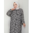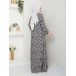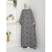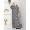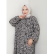 Düğme Detaylı Çiçekli Viskon Elbise - Siyah / E0123 Siyah