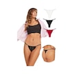 Önü Dantelli Tül Detaylı Kadın Tanga 3'lü Paket Külot - 3 Renkli-3 Çok Renkli