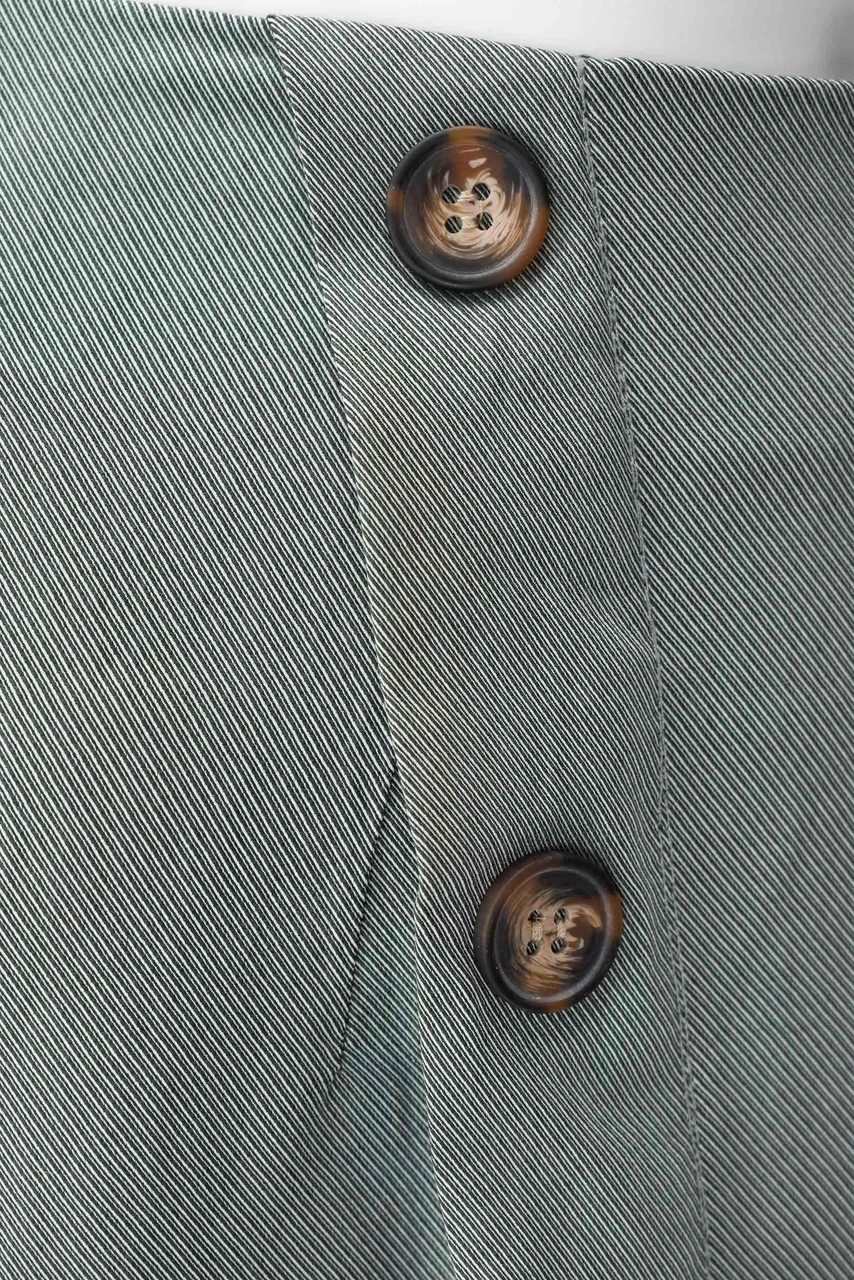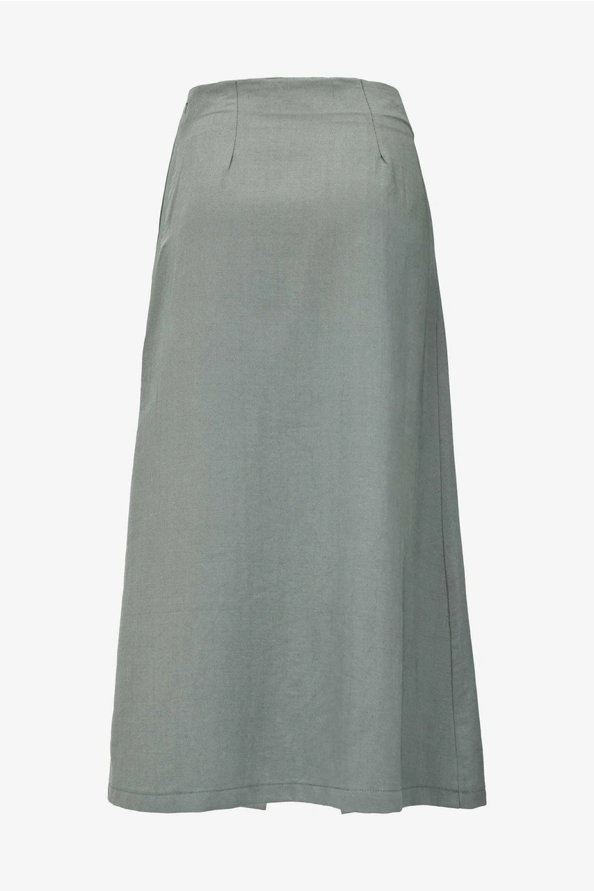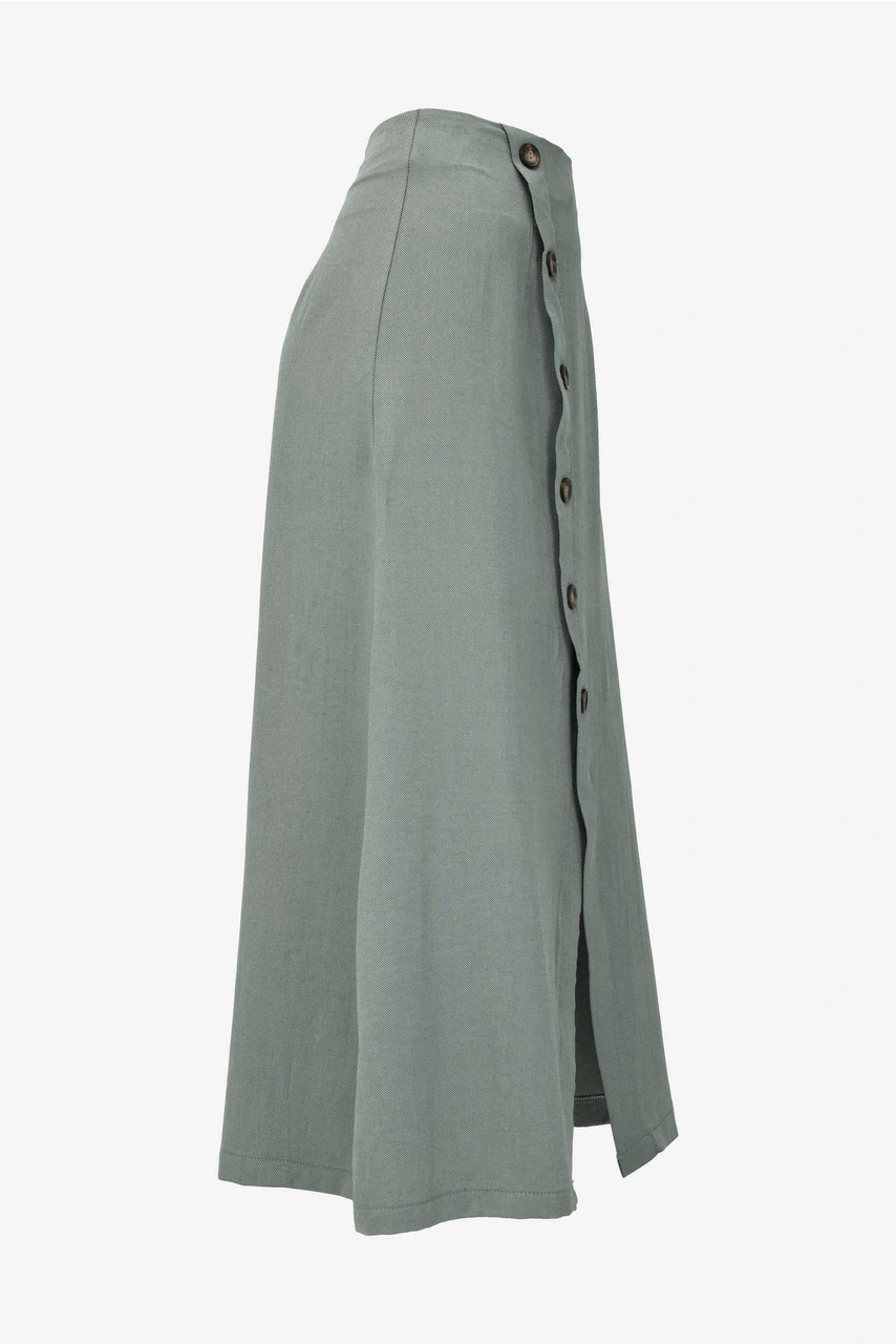 Önü Düğme Detaylı Yırtmaçlı Midi Boy Etek- Mint Yeşil Yeşil