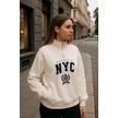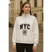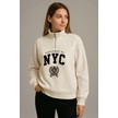 Önü Fermuarlı Nyc Baskılı Sweat Ekru