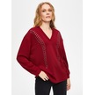 Önü Trok Taşlı V Yaka Sweatshirt 69509 U6950940 Bordo