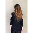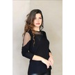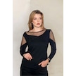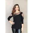 Önü Ve Omuzları Tül Parçalı Bluz Siyah