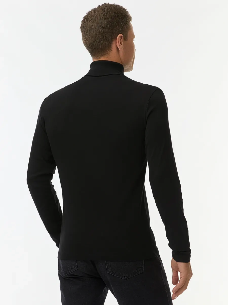 Deepsea Erkek Siyah Desenli Dar Kesim Tam Balıkçı Yaka Triko Boğazlı Kazak 2505510 Siyah