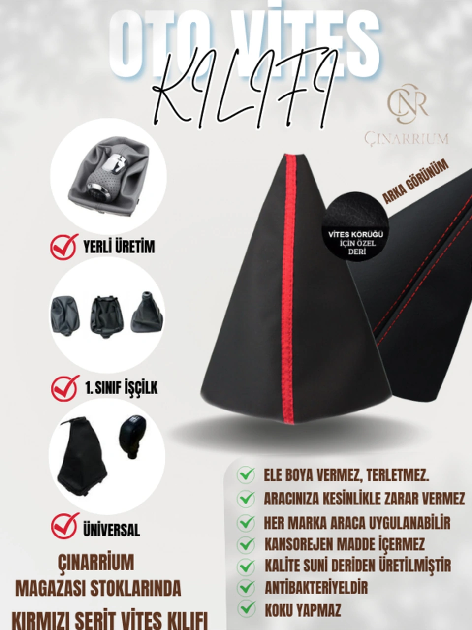 Opel Combo Siyah Deri Prime Tasarım Kırmızı Şerit Vites Körüğü