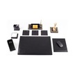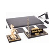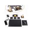 Opta 10 Parça Şahlanan At Biblolu Siyah Deri Sümen Seti Takımı Gold Kalem Ofis Masa İsimliği Lüks İsimlik