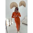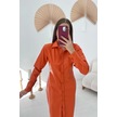 Oranj Boydan Düğmeli Deri Elbise Oranj