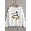 Ördek Baskılı Bisiklet Yaka Sweatshirt Beyaz