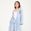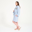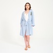 Ördek Nakışlı Kısa Kapüşonlu Müslin Kadın Bornoz-Mavi